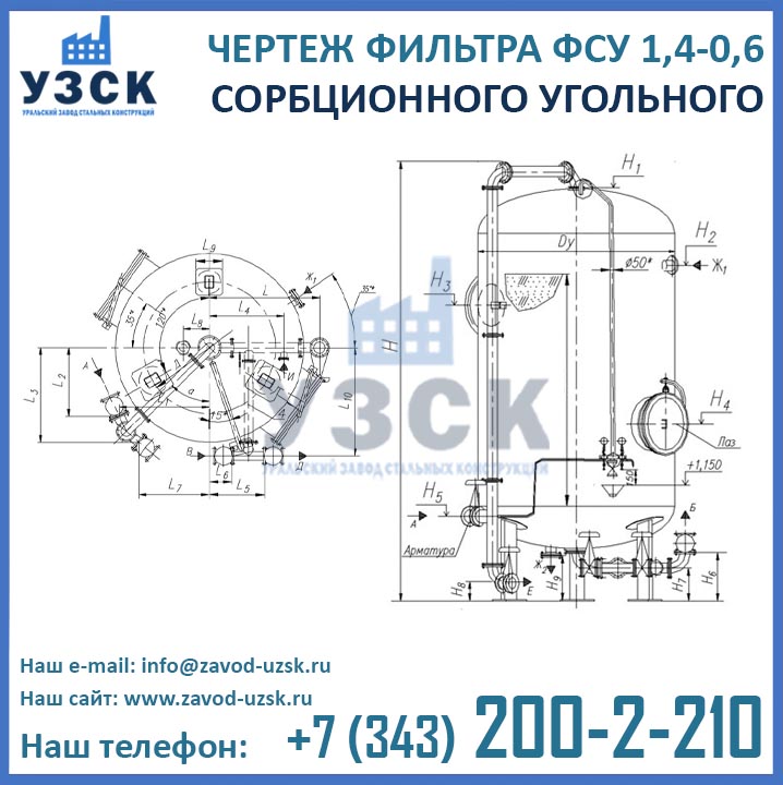 Если вы ищете фильтры ФСУ-1,4-0,6 в Кызылорде от изготовителя, то Вы на правильном пути! Уральский завод стальных конструкций – непосредственный производитель сорбционных фильтров ФСУ, предлагающий самые выгодные цены на ФСУ-1.4-0.6 в Кызылорде. По окончании процесса производства угольные фильтры проходят гидравлические испытания пробным давлением 0,9 МПа на аттестованном гидростенде, находящимся в собственности завода УЗСК. Мы гарантируем высокое качество выпускаемой продукции, и в этом уже убедились ведущие предприятия промышленного сектора России и стран ЕАЭС (см. раздел «Наши клиенты»).