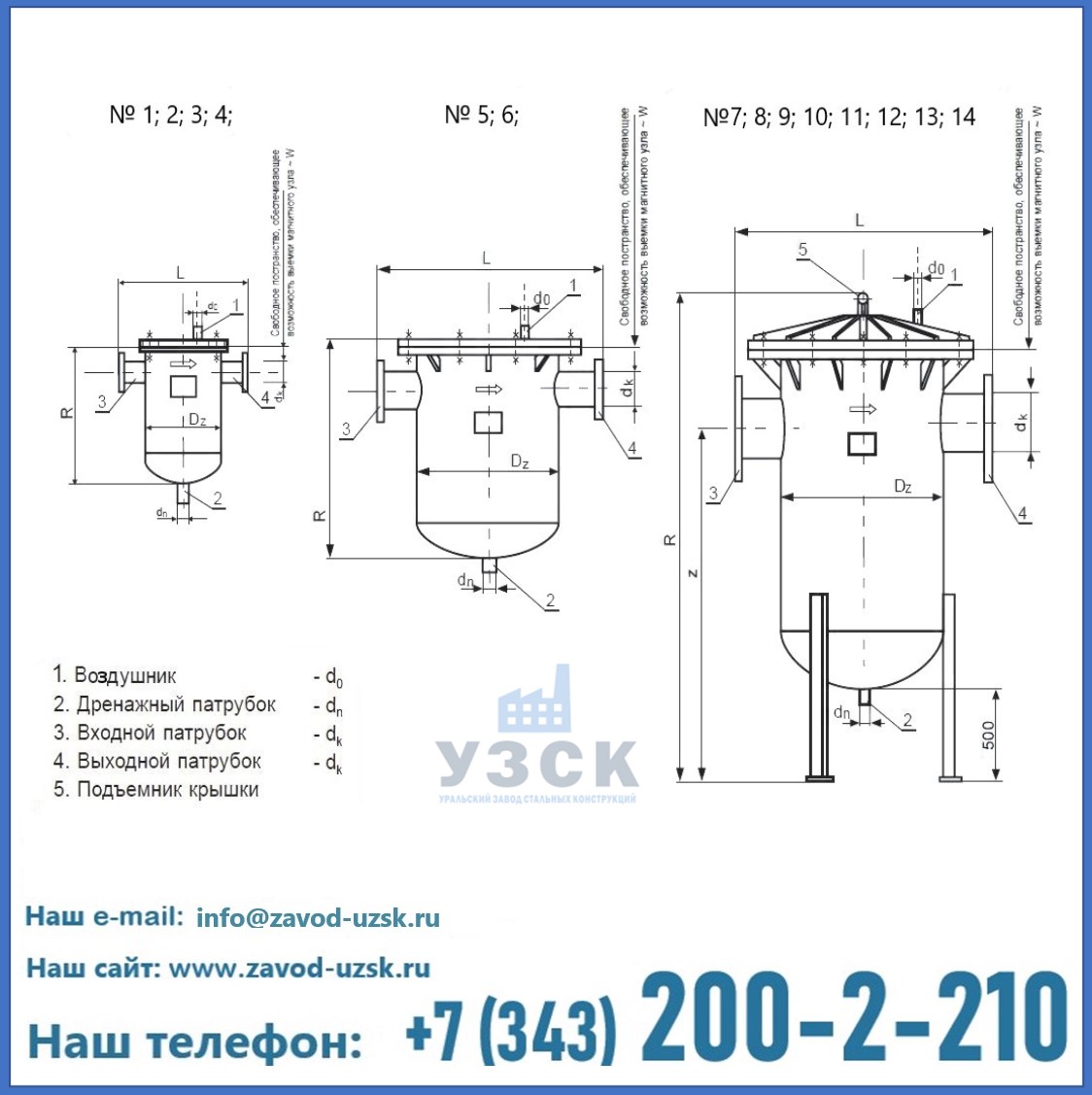 | Марка шламоотводителя | Dz | Dk | L | R | Do | Z | Dn | ~W | расход (max) | Po | V | вес |